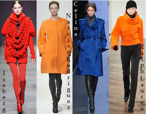 The top colors designers are proposing are intense red, royal blue and brilliant orange. An evening gown red as fire, an orange swingy cape, a sapphire colored vaporous and feminine chemise will be must-have items for Fall/Winter '08-'09 season!