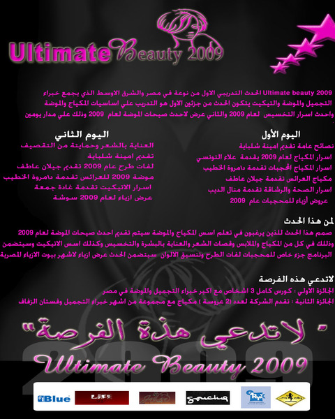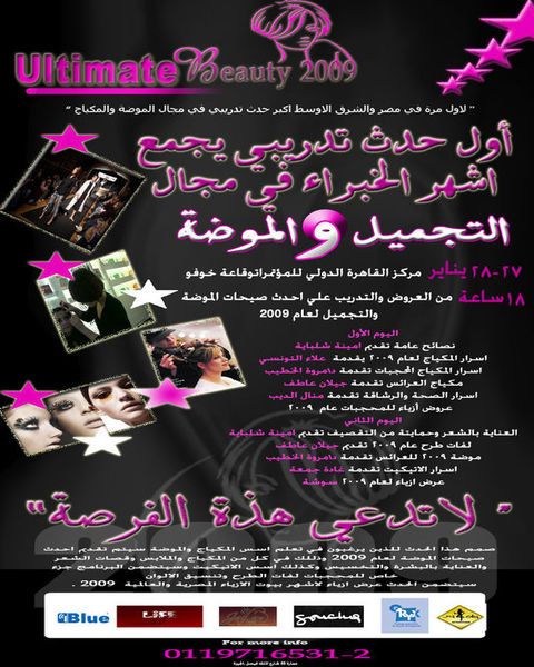 For the first time in Egypt and the Middle East Ultimate Beauty seminar This seminar is designed for those wishing to learn basics of beauty and skills to be star Bridal make up and smokey to high fashion make up. this seminar covers product awareness, Hygiene, tools of the trade, skin analysis, face shapes, different skin tones, color correcting, eye brow shaping, highlighting, correct use of concealers, the application and choosing of Foundation, application and blending of eye shadow, eyeliners and false lashesz